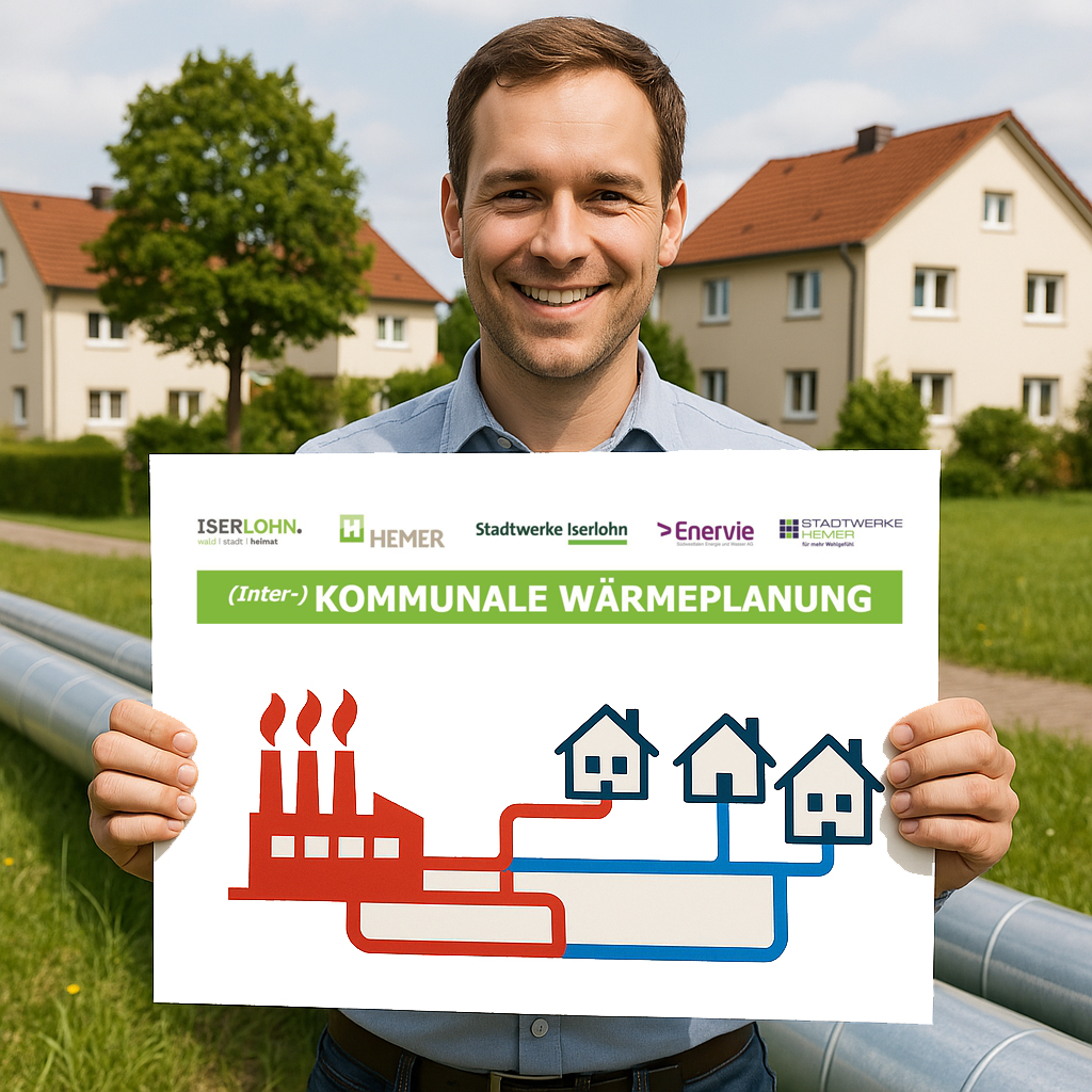 Das sogenannte Wärmeplanungsgesetz (WPG) ist bereits 2024 in Kraft getreten und verpflichtet alle Kommunen in Deutschland zur Erstellung einer Wärmeplanung für eine nachhaltige Stadtentwicklung. Für die Bürgerinnen und Bürger bedeutet das langfristig eine Übersicht, in welchen Stadtteilen welche Form der Wärmeversorgung möglich und sinnvoll ist. Die Interkommunale Wärmeplanung stellt in diesem Prozess den ersten Schritt dar und fungiert als informelles Planungsinstrument, dass Eignungsgebiete für zukunftsfähige dezentrale Wärmeversorgungsoptionen darstellt, auf deren Grundlage im weiteren Verlauf konkrete Energieversorgungsmaßnahmen der Kommunen abgeleitet werden können. Ziel der kommunalen Planung ist es, den Weg zu einer klimaneutralen Wärmeversorgung in Iserlohn und Hemer bis 2045 zu gestalten.